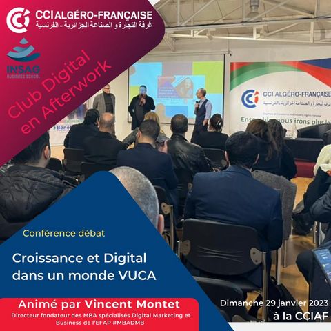 Club Digital avec M. Vincent Montet, Directeur - fondateur des MBA spécialisés, Digital Marketing & Business, pour un riche échange sur "𝗟𝗮 𝗰𝗿𝗼𝗶𝘀𝘀𝗮𝗻𝗰𝗲 𝗲𝘁 𝗹𝗲 𝗱𝗶𝗴𝗶𝘁𝗮𝗹 𝗱𝗮𝗻𝘀 𝘂𝗻 𝗺𝗼𝗻𝗱𝗲 𝗩𝗨𝗖𝗔" avec nos adhérents