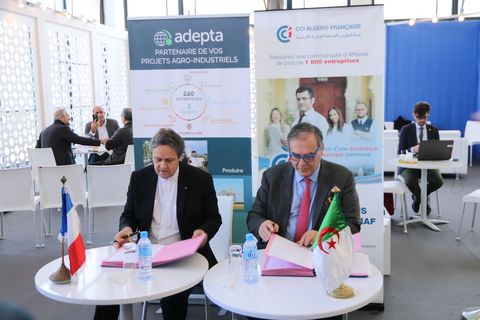 La Chambre de Commerce et d’Industrie Algéro-Française, CCIAF a signé mercredi 27 février, une convention de collaboration avec l’ADEPTA l’Association pour le Développement des Echanges internationaux de Produits et Techniques Agroalimentaires en marge du salon Djazagro qui s'est tenu à Alger du 25 et 28 février 2019.