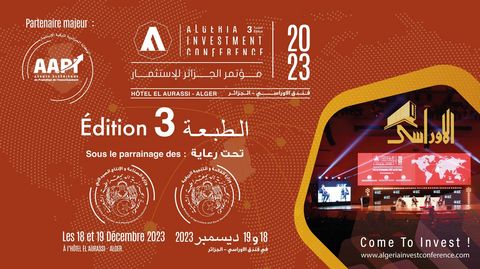 Nous avons le plaisir de vous informer que la Chambre de Commerce et d'Industrie Algéro - Française est partenaire du Algeria Investment Conference AIC pour sa troisième édition, qui se tiendra les 22 et 23 Novembre 2023 à l'Hôtel El Aurassi Alger.