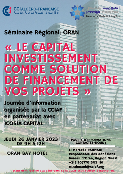 Région Oran - Séminaire : Le capital investissement comme solution de financement de vos projets