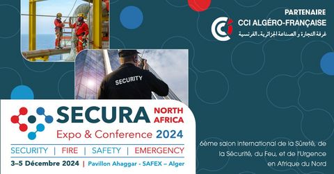 Nous avons le plaisir de vous annoncer que la Chambre de Commerce et d'Industrie Algéro-Française est partenaire du salon SECURA North Africa, considéré comme la plus vaste tribune internationale dédiée à la sécurité, la sûreté, le feu et de l’urgence en Afrique du Nord. La sixième édition de cet événement se déroulera au Palais des Expositions d'Alger (SAFEX), au niveau du pavillon Ahaggar, du 3 au 5 décembre 2024.